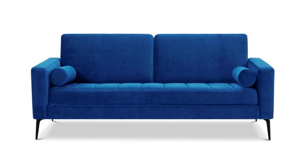 Upholstered in velvet blue, Black leg.