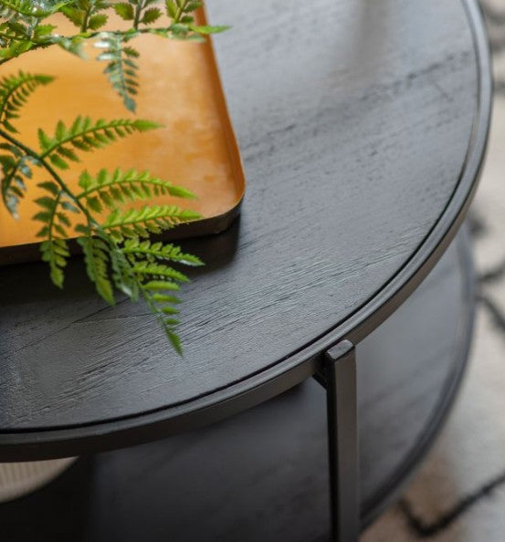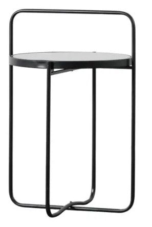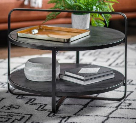 Round black metal with open shelf
