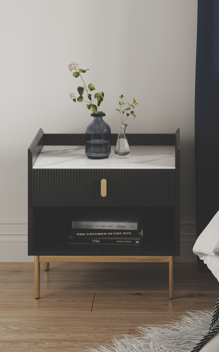 Black wood effect with drawer, Gold base