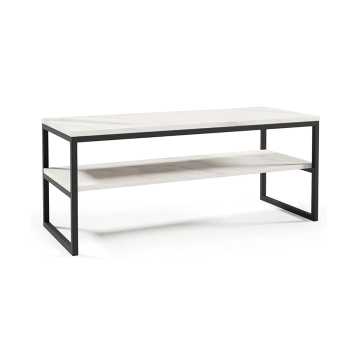 White marble effect with shelf and black legs.