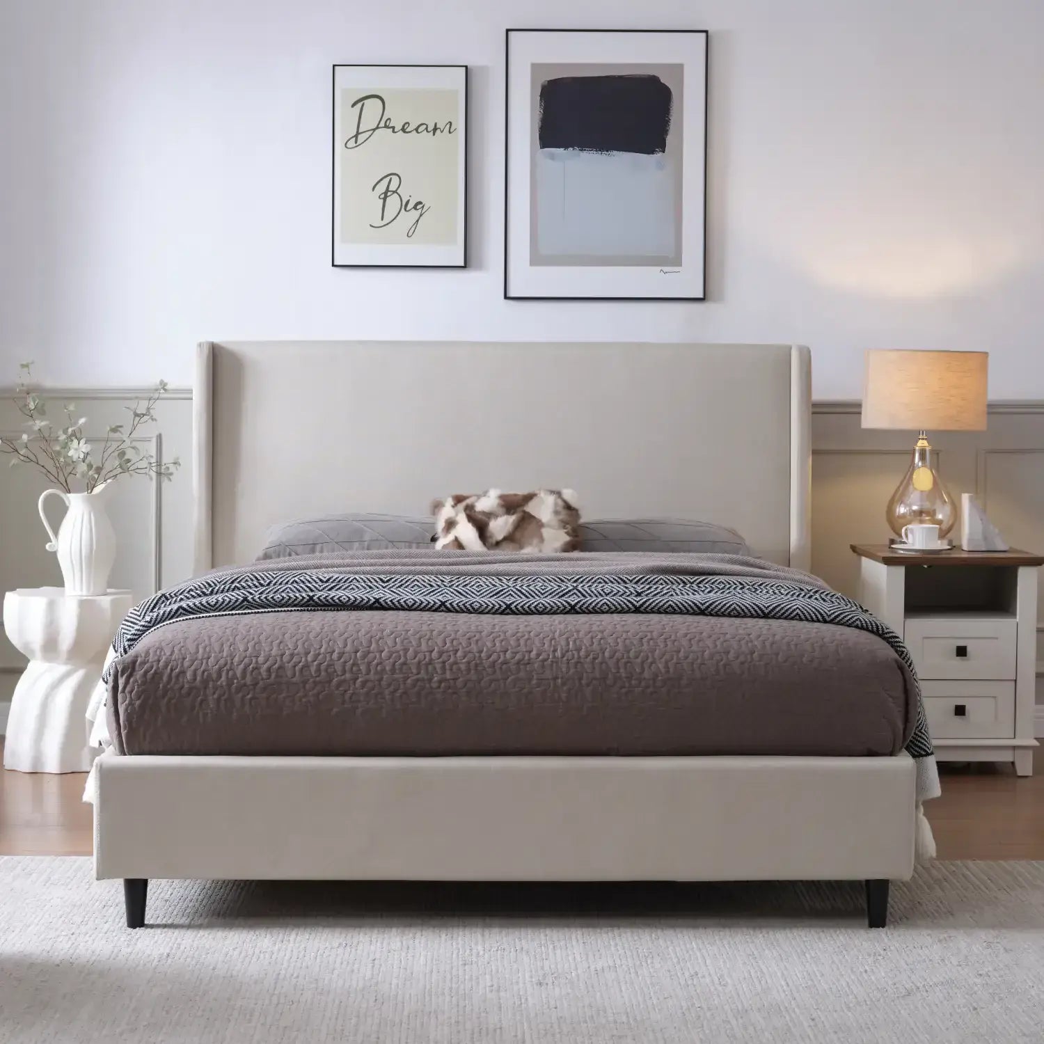 Upholstered in Grey or Beige