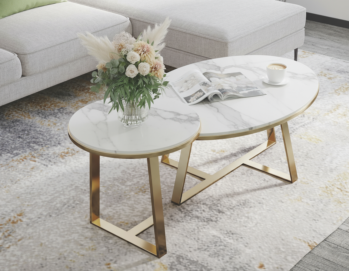 White sintered stone, Gold base.